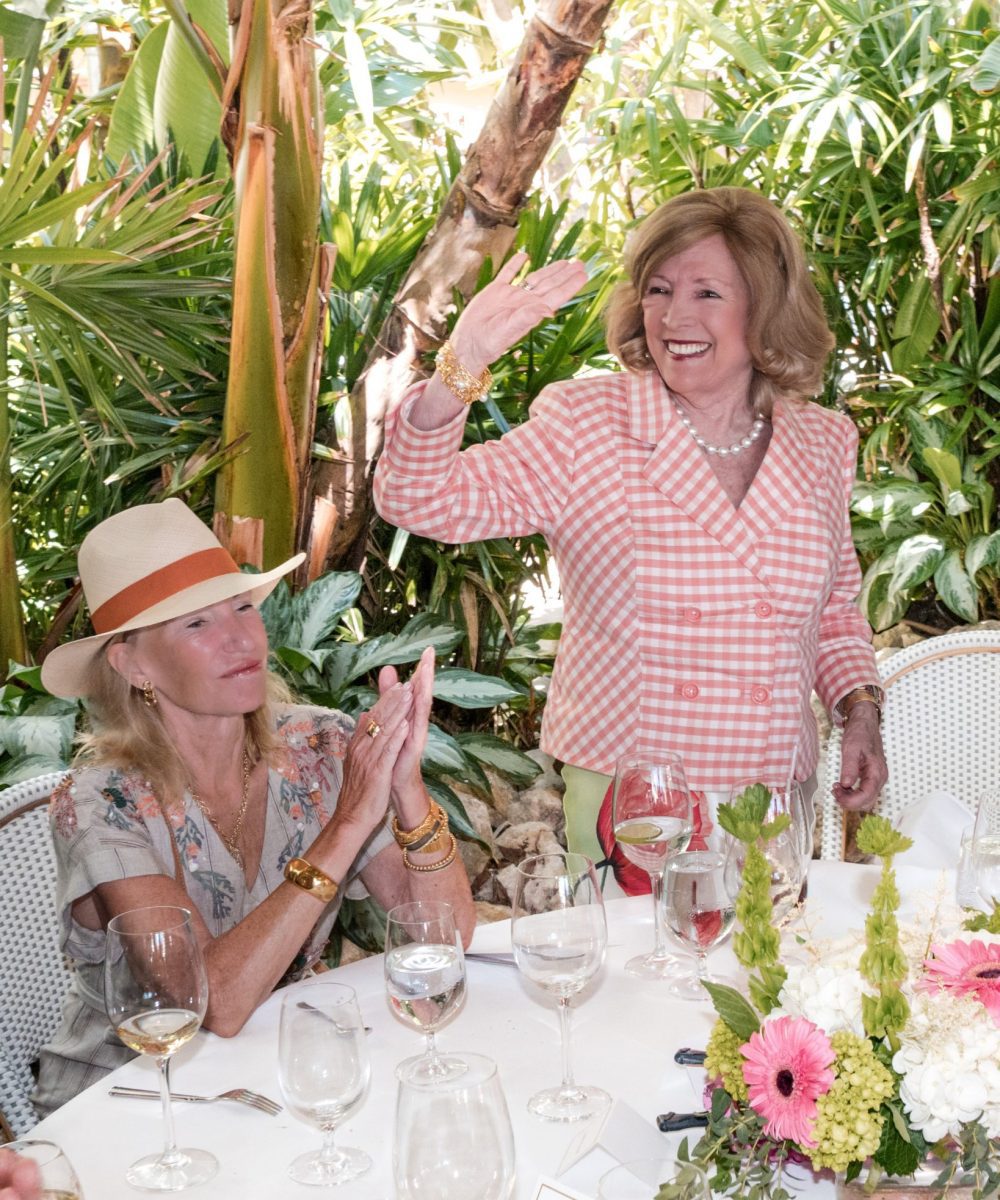 Guests gathered under the palms, sipping champagne and enjoying a delicious French-inspired lunch in a floral-filled garden. The atmosphere was festive, warm, and purpose-driven—benefiting FHS’s mission to preserve and promote the architectural and cultural treasures of France, both in France and the United States.