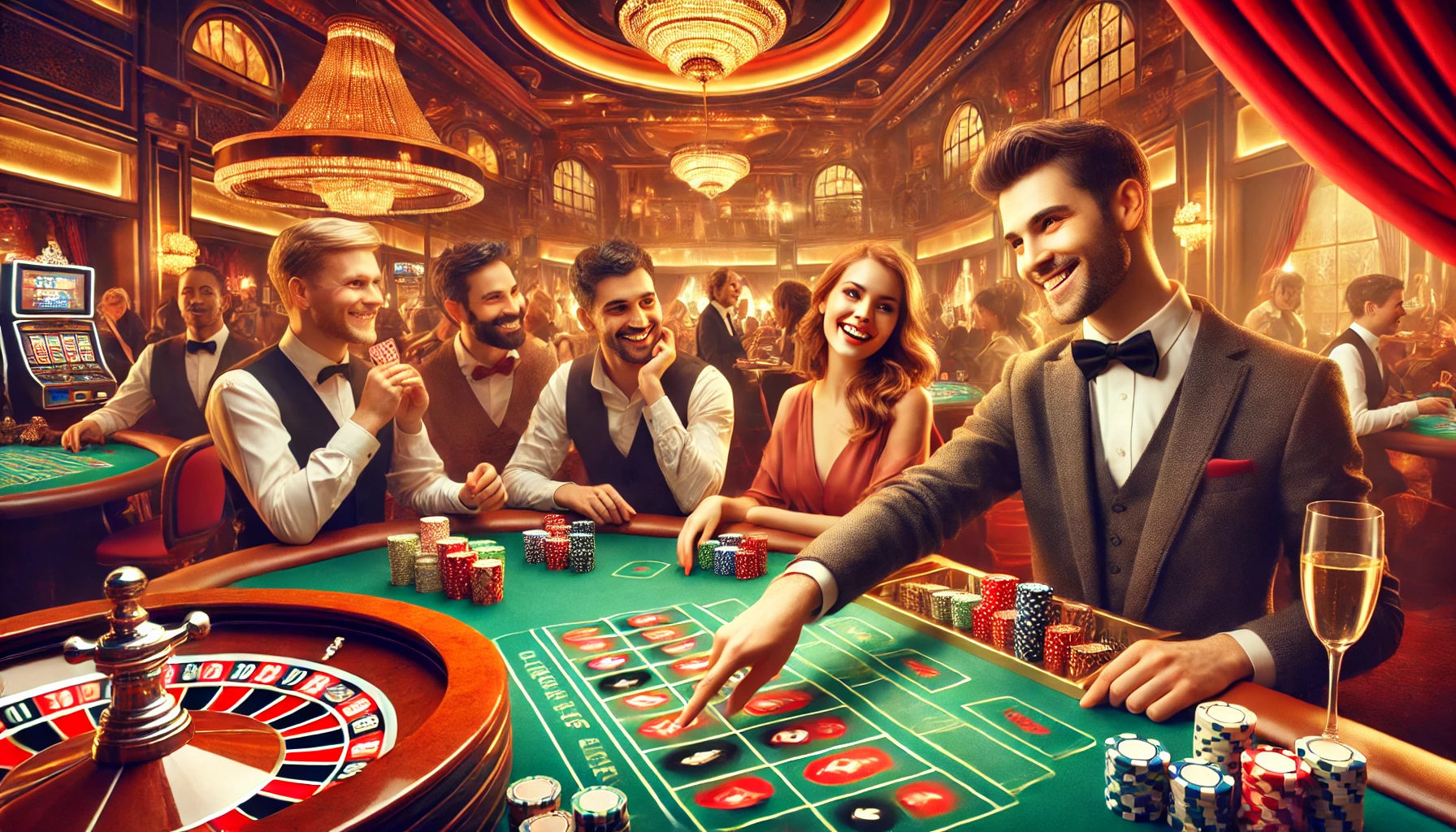 - Players place bets on where they think the ball will land on the spinning roulette wheel.