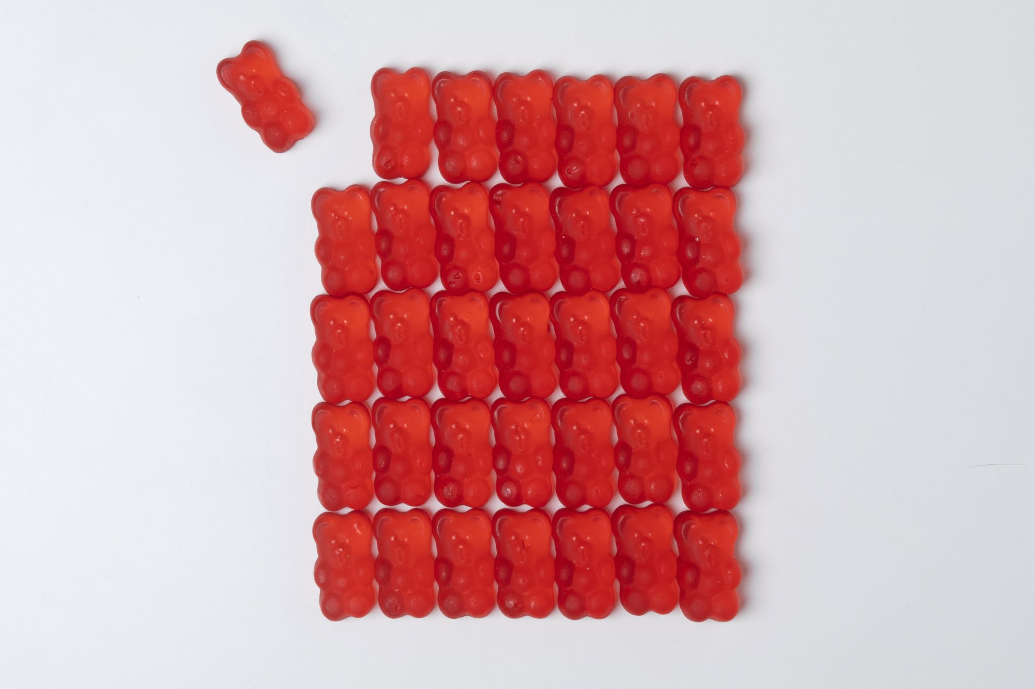 Citric acid plays a key role in maintaining tartness and stabilizes the pH of the gummy, while the unique fruity taste and smell are achieved by using natural and artificial cherry flavors. To achieve uniformity in color, a regulated amount of red coloring agents is added. A combination of these ingredients makes up the gummy structure.