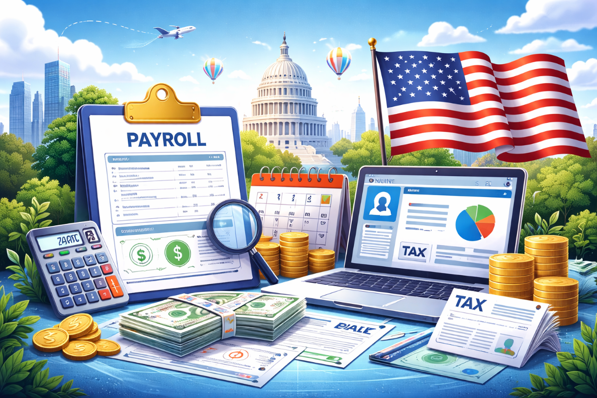 Payroll in the USA is the process of paying employees, withholding taxes, and ensuring compliance with federal, state, and local regulations.
