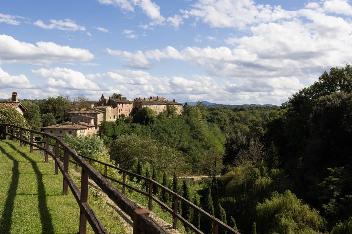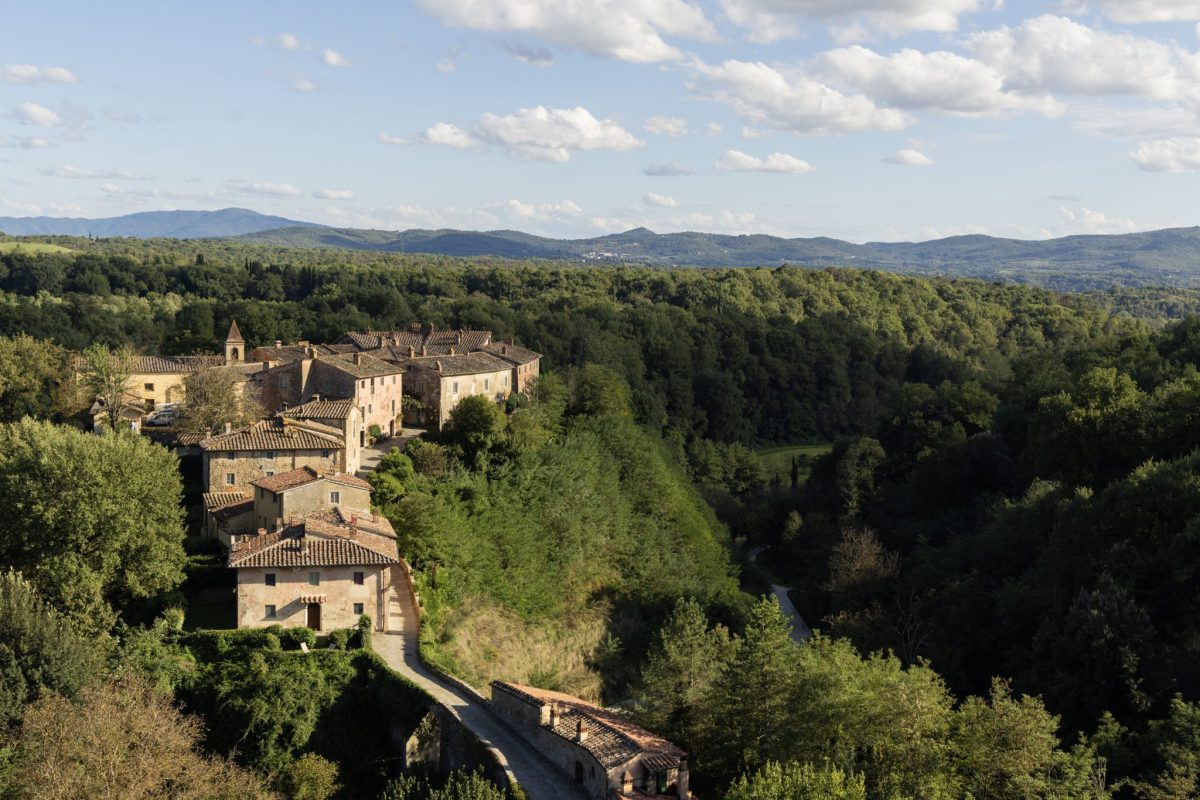 That was the year Ferragamo’s father, Ferruccio Ferragamo, purchased the medieval village from Duke Amedeo of Savoy-Aosta, a member of Italy’s royal family. The younger Ferragamo, grandson of the fashion house founder whose name he shares, was studying business in New York when the project began. “My father loved the countryside and saw incredible potential in the property,” he recalls. “He gathered the family together and said, ‘This will diversify our investments—but it must also stand on its own merit.’”