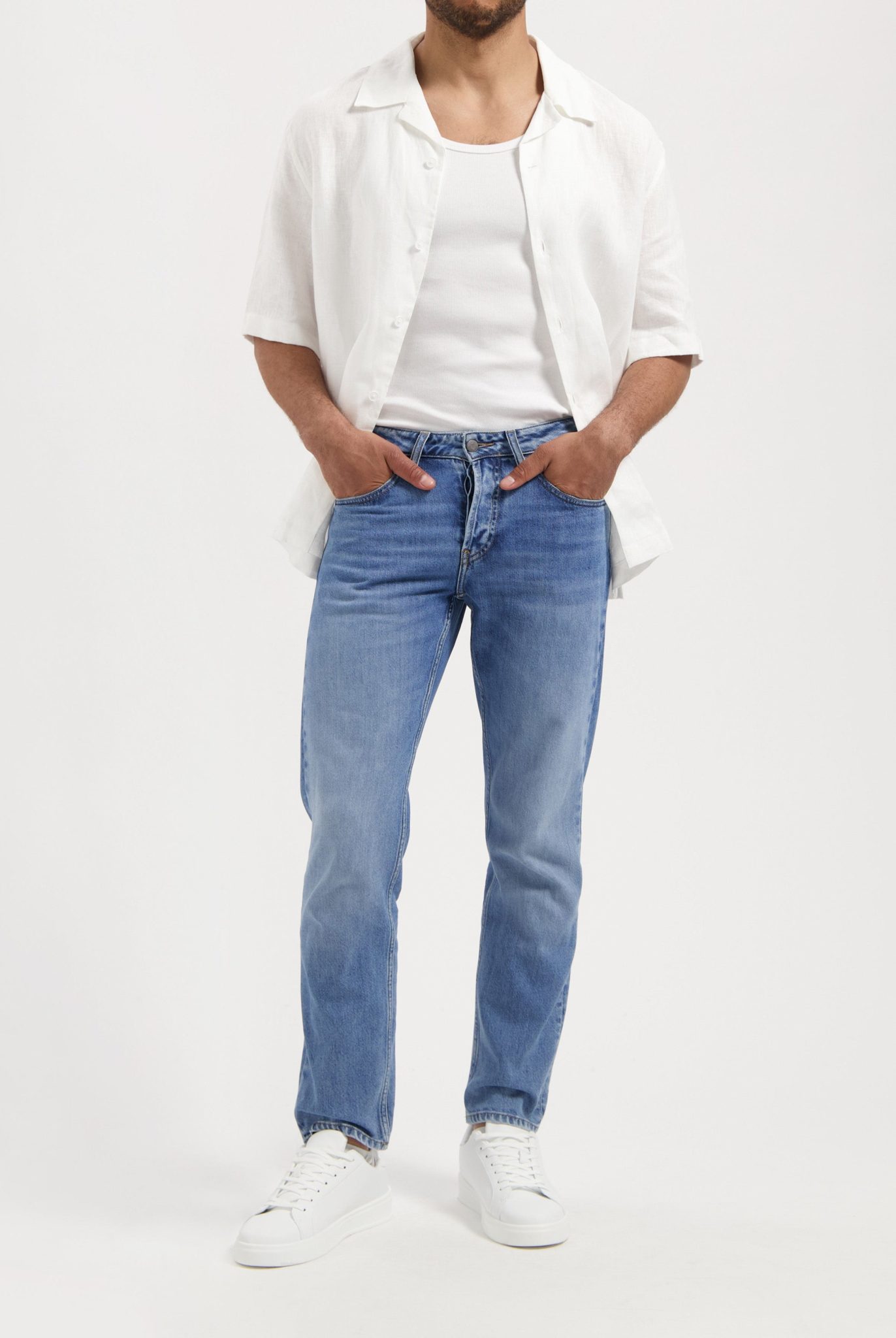 Pair straight-leg jeans with a simple t-shirt or hoodie
