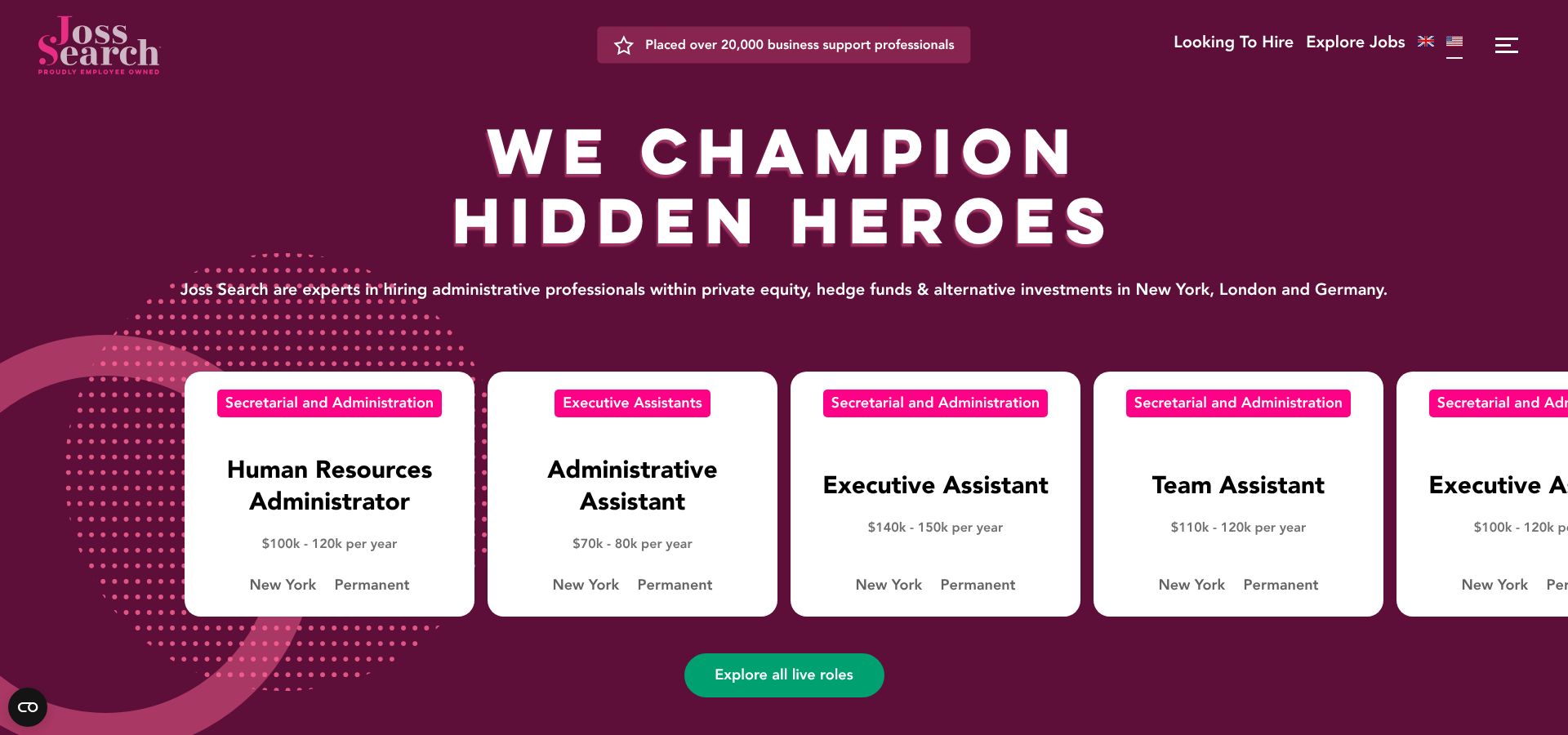 Joss Search Yes 2–3 weeks Contingent US & Europe Large cross-Atlantic network